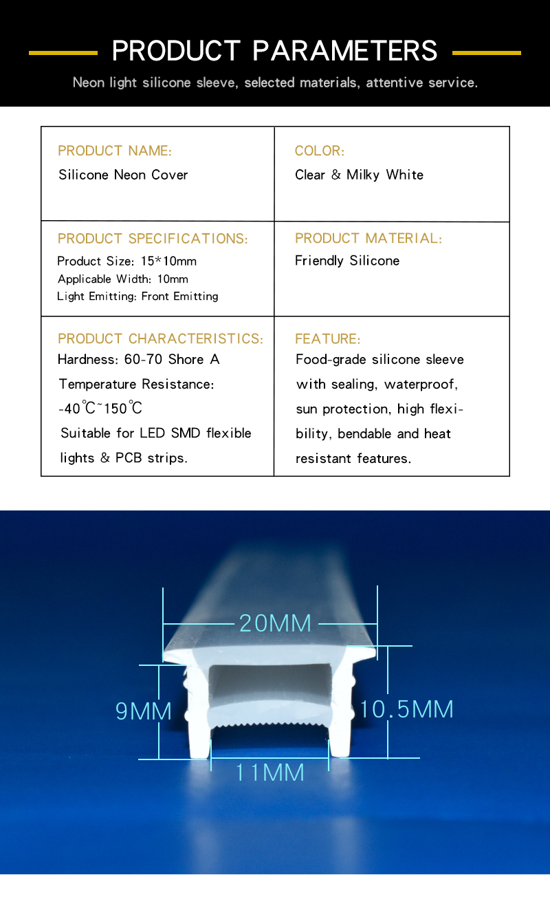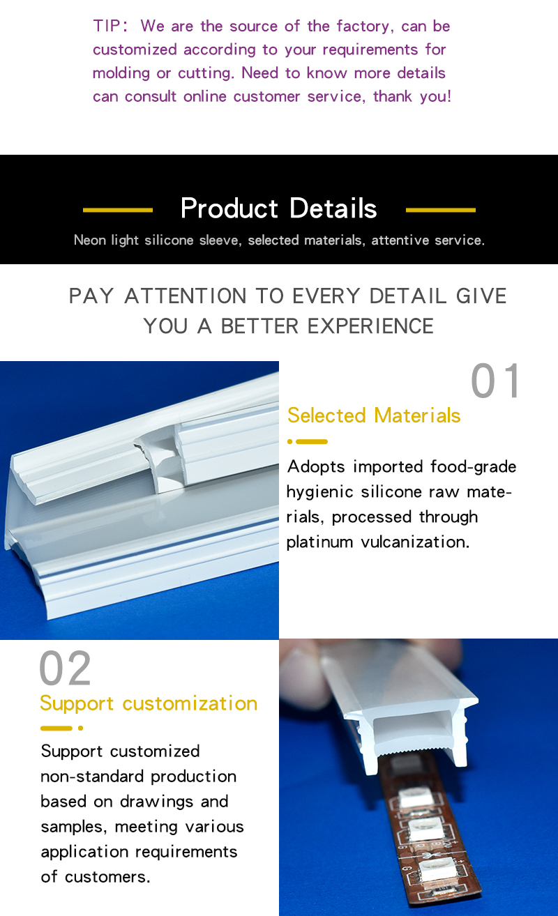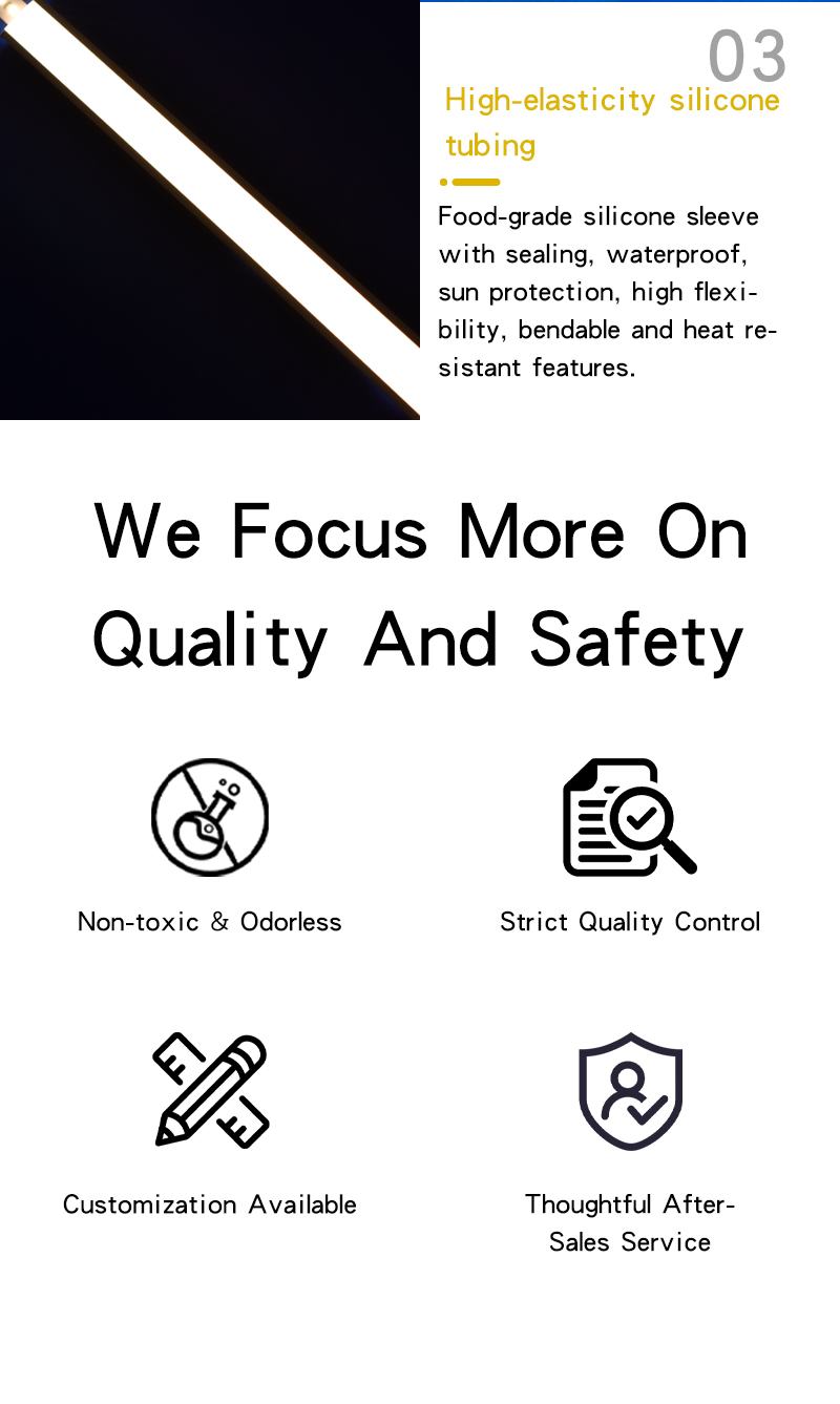 With outstanding environmental adaptability, our silicone tube is suitable for both indoor and outdoor large-scale engineering projects. It is widely applied to diversified scenarios including living rooms, kitchens, bedrooms, corridors, shopping malls and parks. It serves as an ideal protective casing solution for custom neon sign making, commercial advertising lighting, architectural outline decoration, home atmosphere lighting and all embedded protection of LED SMD PCB strip light projects.