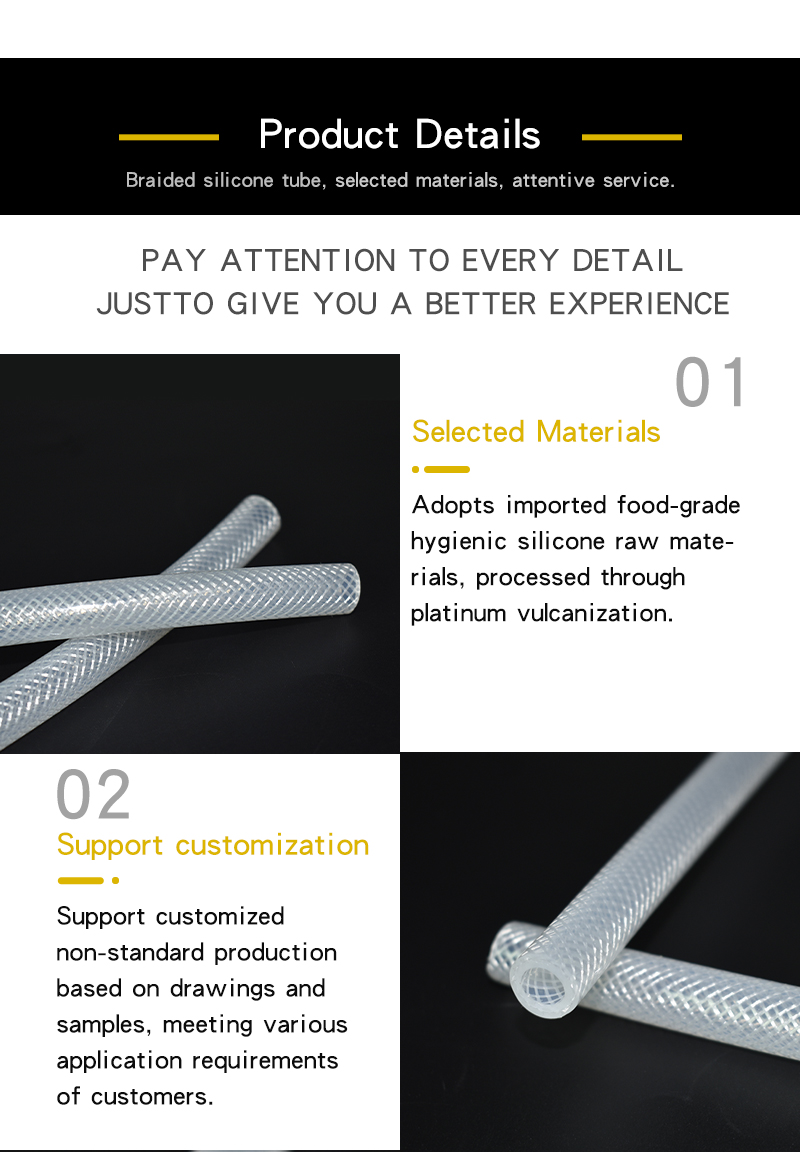 A:Yes. Food grade braided silicone tube has a smooth inner wall and is not easy to scale, ideal for hygienic fluids such as milk, wine, sauces and beverages.