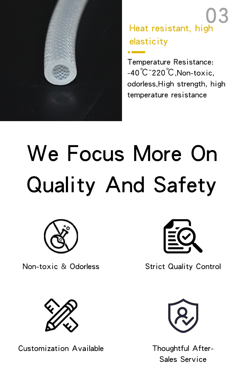 A:Its pressure resistance is better than ordinary silicone tube. Different layers of braided reinforced tubes can be selected according to pressure requirements.