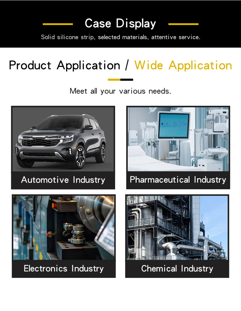 A: Widely used for sealing in automotive, electronics, home appliances, food, medical, machinery, chemical, lighting and drying equipment industries.