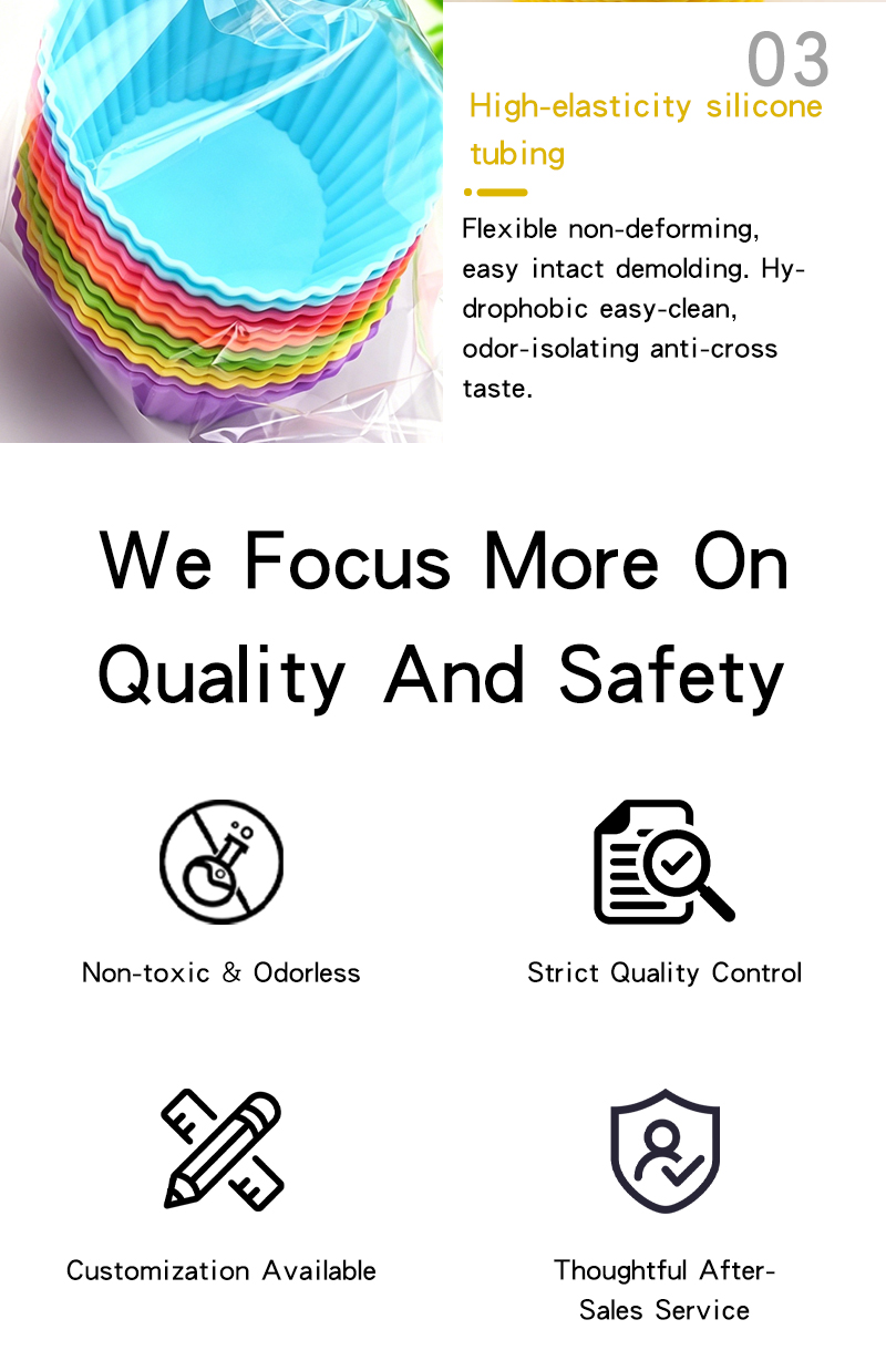 - Food-safe material, non-toxic and odorless, anti-yellowing and color-fading resistant. Wide temperature resistance from -40℃ to 200℃ with excellent thermal stability. High flexibility, deformation and crack resistant, with great tear resistance and resilience. Non-stick inner surface for easy demolding, simple to clean. With heat insulation, water-proof, anti-slip and shockproof properties, eco-friendly and reusable.