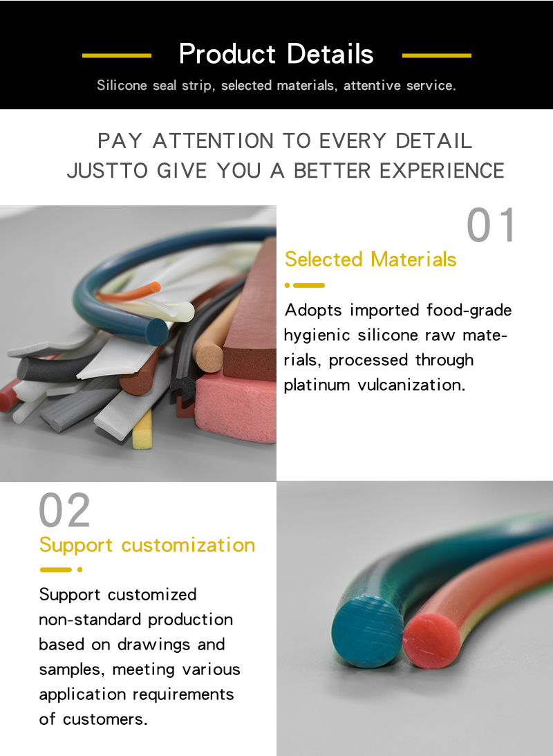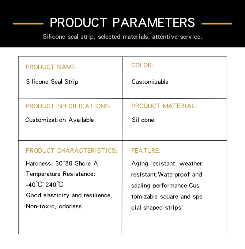 Features:High-Temperature Resistant Seal Strip:Excellent resistance to high and low temperatures, ozone and atmospheric aging.Also with good dielectric properties, water repellency and physiological inertness.Mainly used in machinery and other sealing parts with high requirements.Operating temperature: -40°C to 220°C